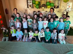 Bieżący tydzień rozpoczynamy w kolorach zieleni. 21 marca, w pierwszy dzień wiosny obchodziliśmy w naszym przedszkolu dzień zielony. Ruszyliśmy z pełną produkcją zielonych prac plastyczno-technicznych, których motywem przewodnim był “Świat widziany przez zielone okulary”, kolejną atrakcją zielonego święta było zielone menu, które towarzyszyło nam przez cały dzień. Przedszkolaki mogły zaprezentować swoje zielone kreacje podczas pokazu mody zielonej, nie zabrakło również zielonej kredy, którą udekorowaliśmy chodniki naszego przedszkolnego podwórka. Co więcej, 21 marca obchodziliśmy również Światowy Dzień Osób z Zespołem Downa, a naszą solidarność prezentowały kolorowe skarpetki “nie do pary”. Poniedziałek pobudził wszystkich do radosnego przeżywania zmiany pory roku 🙂